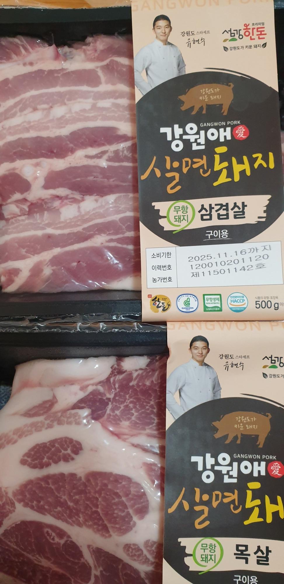 [상호맘]강원에살면돼지세트(삼겹살 500g, 목살 500g) 친환경무항생제100% [(주)상호맘]