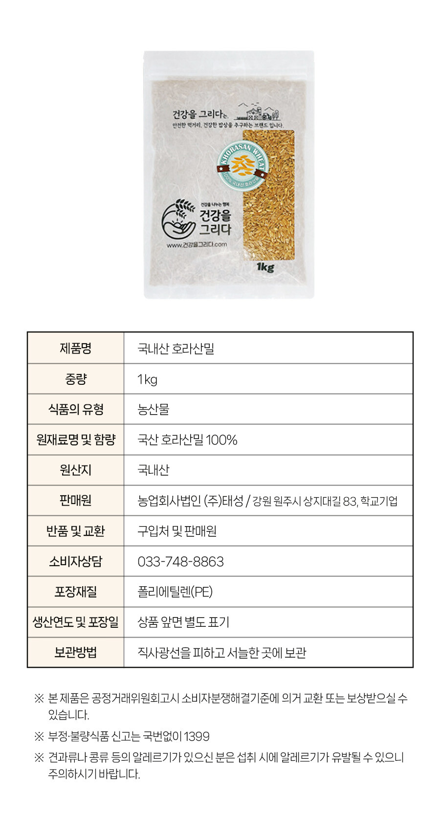 국내산 호라산밀 2025년 햇곡입니다.