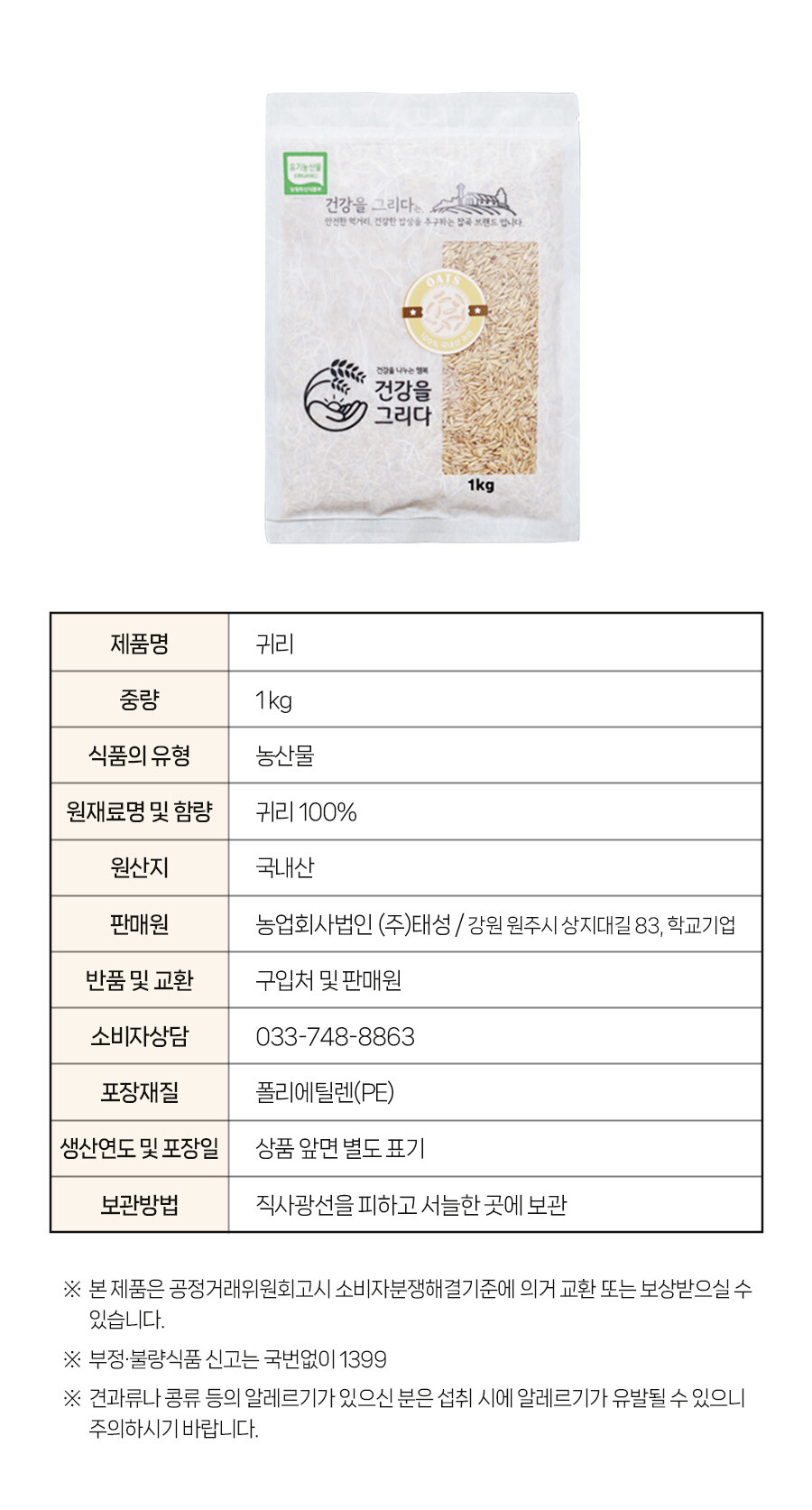 유기농 귀리 2025년 생산된 햇귀리 입니다.